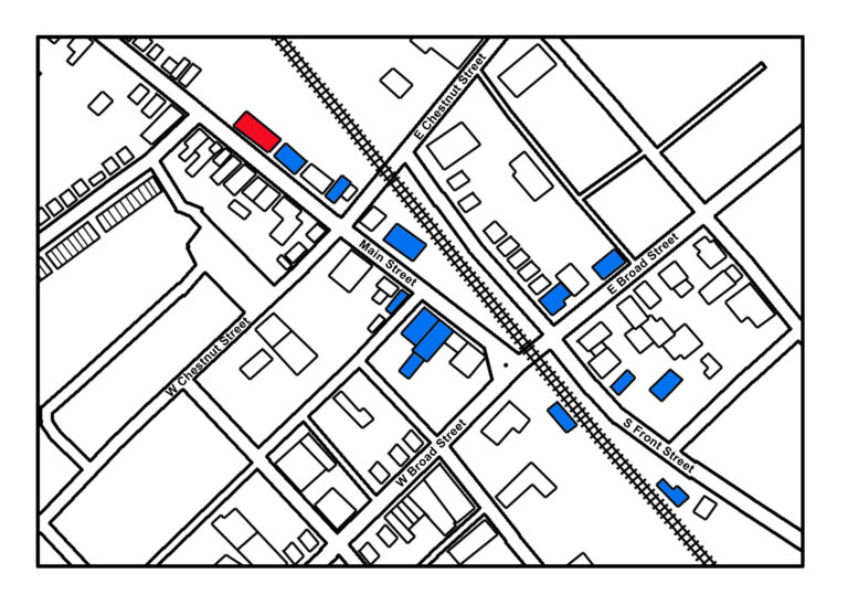 In July 1897, local businessmen formed the Souderton Improvement Company to promote industrial growth. This three-story, 50-by-100-foot building was designed specifically as a cigar factory. Two years after completion, Theobold & Oppenheimer advertised for 50 workers – “at once” – marking the beginning of its industrial use.