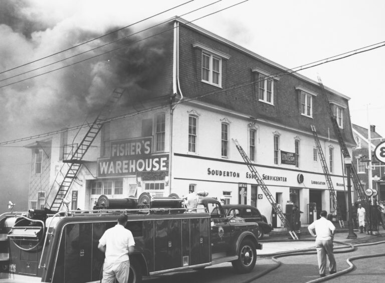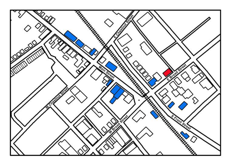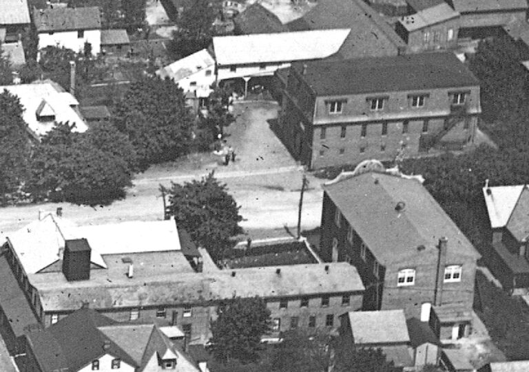 Liberty Hall originated as a livery stable serving the nearby hotel. In 1881, William D. Hunsberger replaced the original wooden structure with this substantial brick building. Designed as a two-story facility, it featured stables for horses and cattle on the ground floor and a public hall above. The second floor also housed offices for the Souderton Independent newspaper.